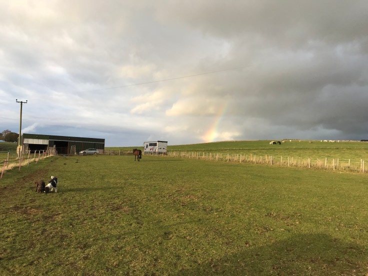 I saw my first rainbow today since Findley died, I was down at the horses and as mum arrived back from her lesson I looked up and saw it, it was there and gone with a blink of the eye. A sign that there is still light after a storm. As the darkness clears and the light return a beautiful rainbow appears. It’s always darkest before the dawn, my friend Barry used to use these words, sadly he died a few years ago. I wonder if he found Findley, he would definitely be proud of the gorgeous boy we created.