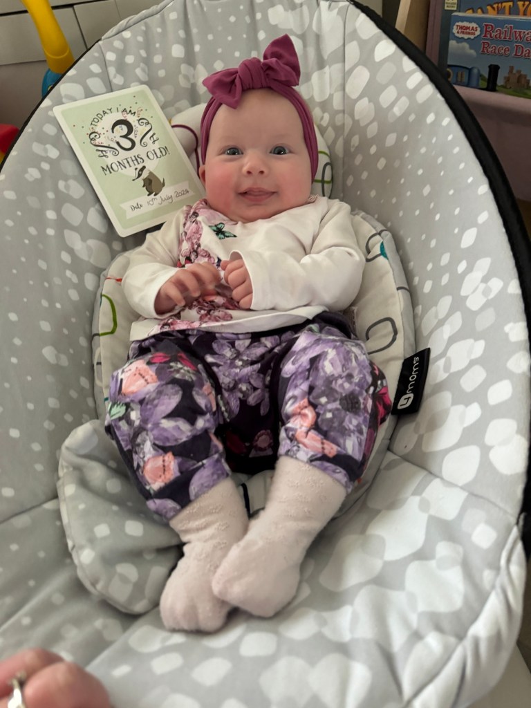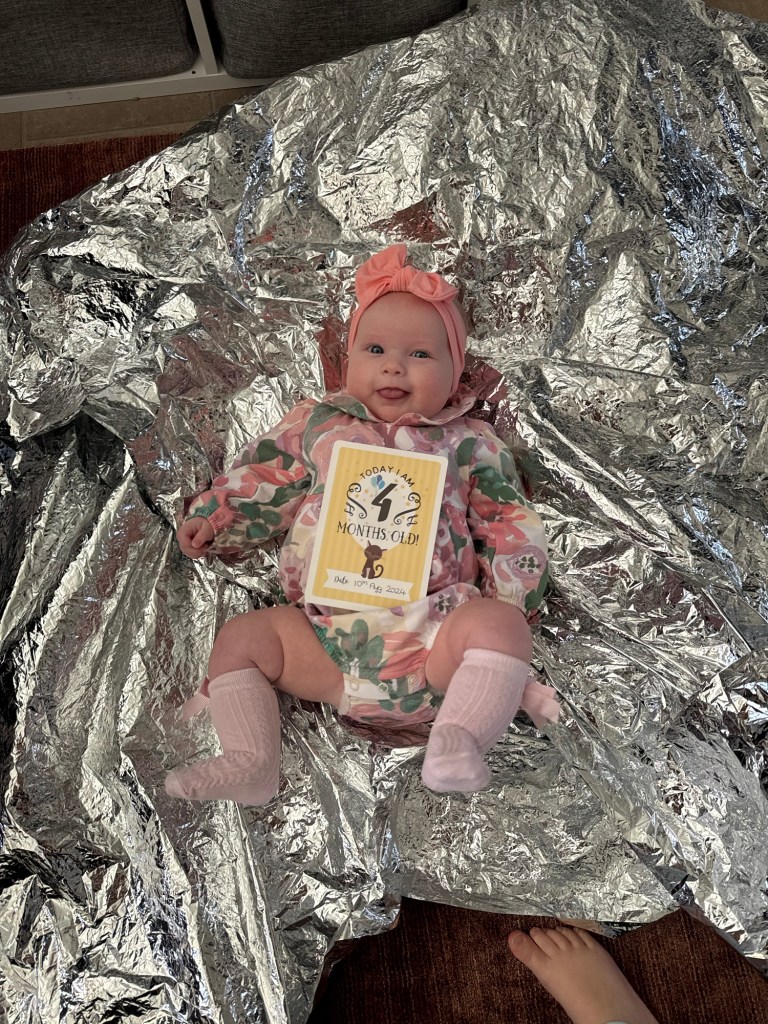 Freya is still dinky 13lbs at 4 months old its so different from Lewis who was 14lbs by 3 months, but look at her ❤️